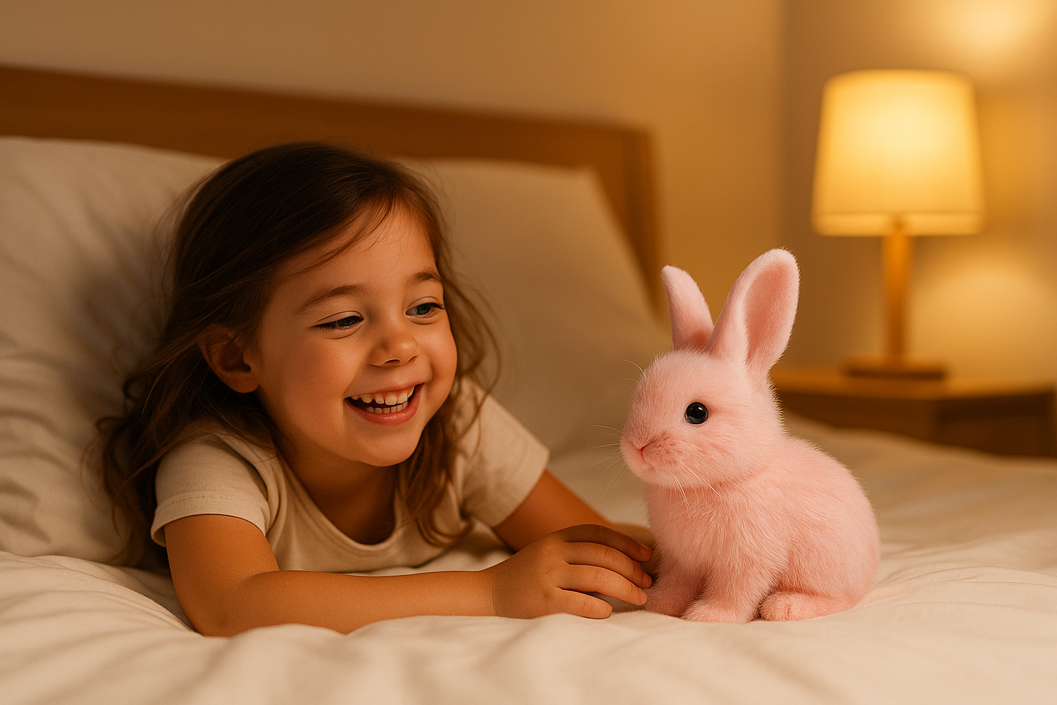 <<J’ai offert Lapin Petsboro à ma fille de 6 ans, et c’est devenu son jouet préféré ! Elle adore le voir sauter et remuer les oreilles. Je suis ravie de la voir inventer des histoires sans écran.>>